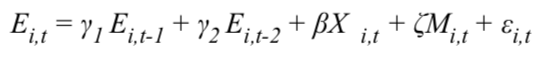 Como método de estimación se utilizó la regresión de panel dinámico propuesta por Arellano y Bover (1995) y Bundell y Bond (1998). Esta técnica utiliza la primera diferencia de la variable independiente como variables instrumentales para reducir la correlación entre las variables independientes (en este caso, la variable dependiente rezagada) y los errores. Esta técnica, originalmente propuesta por Arellano y Bond (1991), utiliza como instrumento la primera diferencia de la variable dependiente y establece que con un orden de rezago adecuado es posible corregir problemas de autocorrelación y endogenidad en los errores de estimación e inconsistencia en los parámetros (Cameron & Trivedi, 2010). Este trabajo utilizó el estimador GMM propuesto por Arellano y Bover (1995) y Bundell y Bond (1998), el cual utiliza momentos adicionales con el fin de aumentar la precisión y las propiedades finitas de la muestra (Cameron & Trivedi, 2010). En el modelo estimado, el empleo (E) es función del salario mínimo (M) y un vector de variables independientes (X). La Ecuación 1 fue