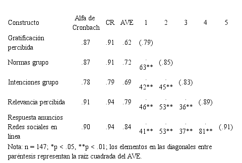 La confirmación de las relaciones entre las variables del presente estudio se alinea con los planteamientos y hallazgos de Soares y Pinho (2014) y de Zeng et al. (2009), con respecto a las variables que impactan la respuesta a los anuncios en las redes sociales en línea. El hecho de que el presente estudio consideró escalas de medición y metodología utilizadas en estudios previos sobre el tema de las redes sociales en línea (Soares & Pinho, 2014; Zeng et al., 2009) aporta a la validez de los hallazgos obtenidos.