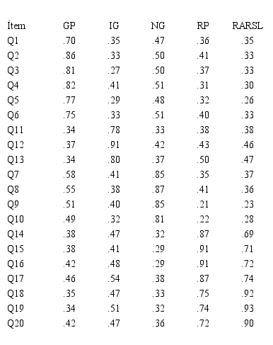 Otro enfoque para examinar la validez discriminante de las escalas es examinar las cargas factoriales y cargas cruzadas de las preguntas que componen los constructos. Para confirmar la validez discriminante de la escala, la carga factorial de una pregunta asociada a un constructo debe ser mayor que cualquiera de sus cargas cruzadas en otros constructos (Hair et al., 2017). La tabla 2 muestra que todos las preguntas o ítems que componen un constructo mostraron cargas factoriales de 0.70 o más, las cuales fueron más altas en su respectivo constructo que en cualquiera de los demás (números subrayados y en negrilla).