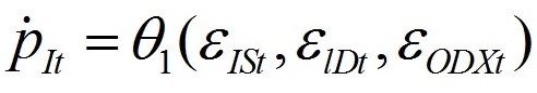 Where, “ ” represents the impulses of “X,” which can be transmitted through its monetary rule. A dynamic version of the relationship in the reduced form can be: