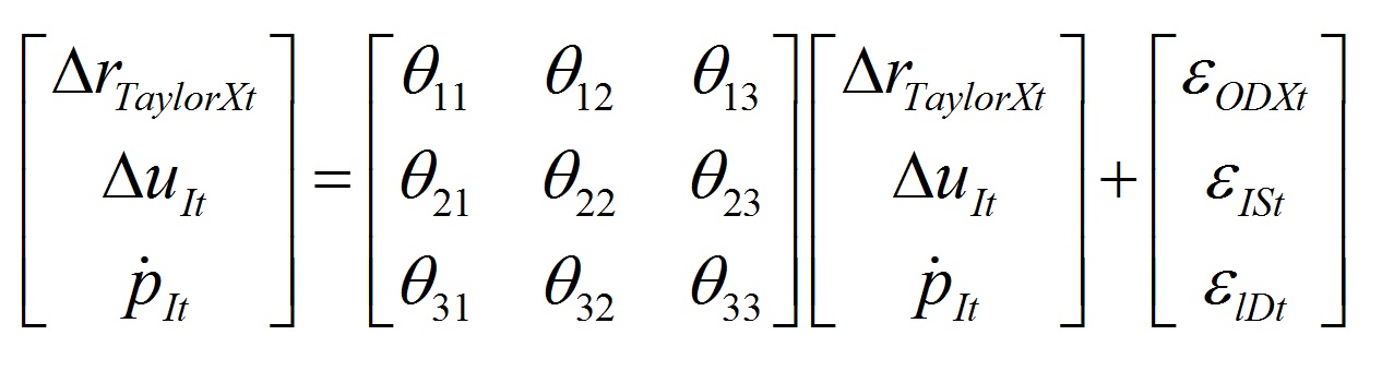 As evidenced in the previous section, the model to be estimated is a VAR system consists of three variables; “ ” represent the Taylor’s rule, as presented on the website of the Federal Reserve Bank of Saint Louis “