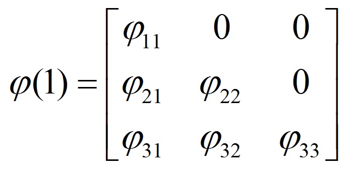for one lag, the long-run multipliers matrix, when restricting that all the elements of the main diagonal are equal to zero, is represented as: