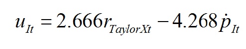 Where " " represents the first difference of the unemployment rate and is the first difference for the variable that represents the Taylor rule,