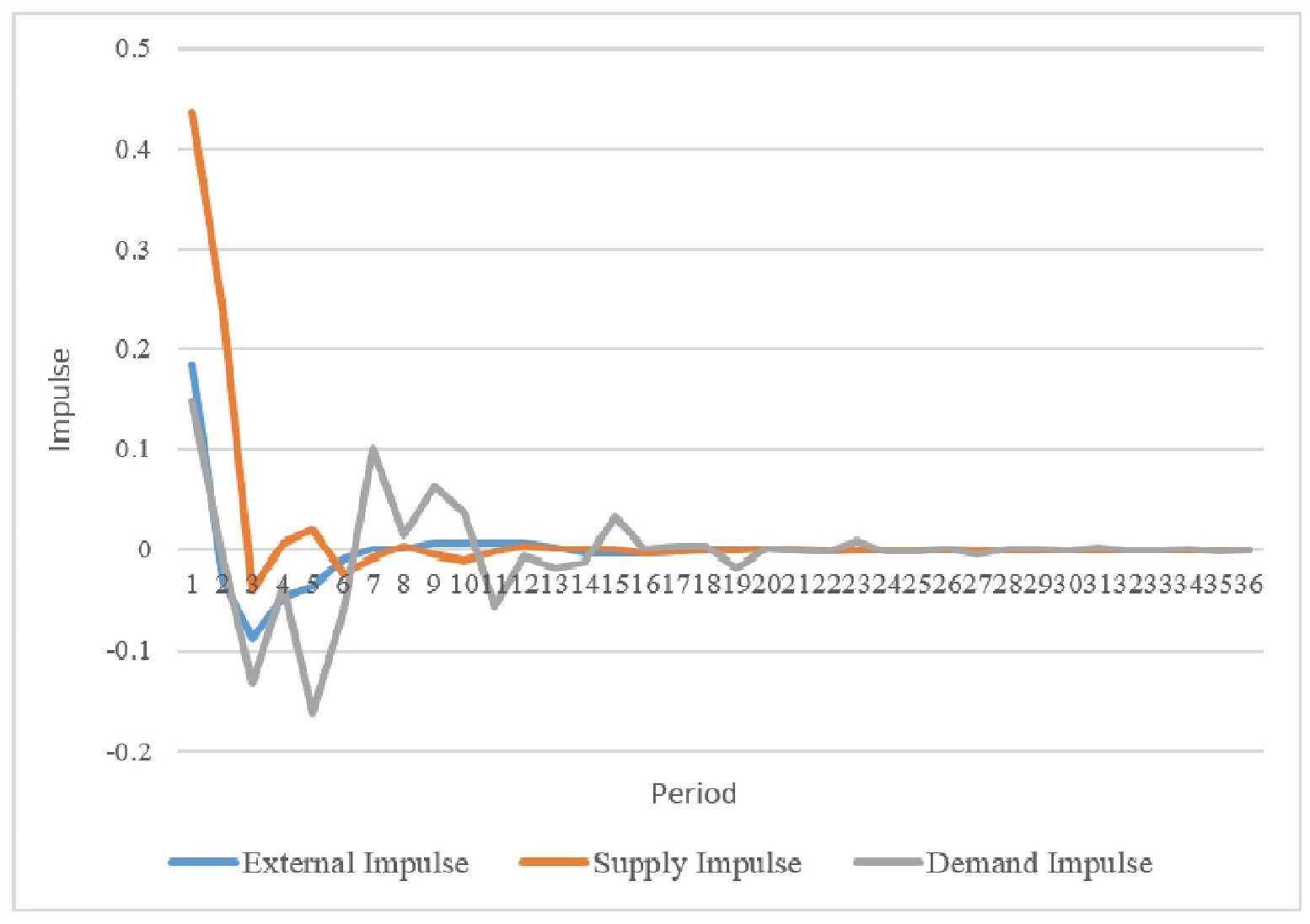 According to economic theory, Keynesian schools are in favor of short-run demand shocks, given the existence of rigidities in the system (Karras, 1993); however, they point out that, in the long run, supply shocks prevail due to price adjustments. On the other hand, there are neoclassical postures that are in favor of supply shocks given the existence of price and wage flexibility (Lucas, 1972; Misas & López-Enciso, 1999; Mio, 2002; Ludlow Wiechers & León León, 2008; Tapia & Ramos, 2012; Toledo, 2014).