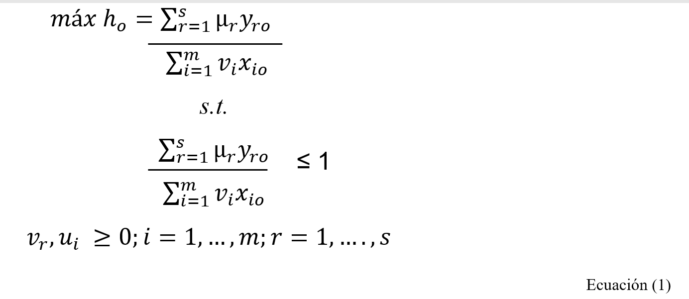 1. Hay n cantidad de DMU que es utilizada como conjunto de referencia; cada una de las cuales emplea los mismos insumos (en m número), para obtener sus productos (en s cantidad).