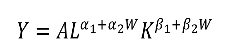 El modelo econométrico empleado parte de una función de producción Cobb-Douglas. De acuerdo con Rasmussen (2013), esta función con factores de producción, trabajo y capital (L y K, respectivamente) toma la forma