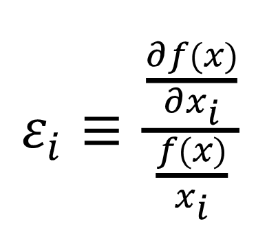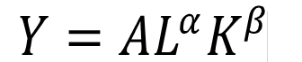 son parámetros predeterminados (constantes). Además, en ella se expresa la relación entre los inputs y el output a través de las llamadas elasticidades de producción que expresan el cambio relativo en la producción a través de un cambio relativo (en la adición) de un input; así, para la especificación dada, las elasticidades de cada factor se calculan mediante la siguiente expresión: