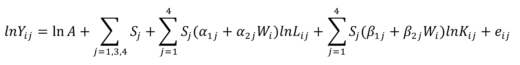 Para cuantificar el impacto que la presencia de Wal-Mart tiene sobre los rendimientos de los factores de producción del sistema alimentario en México, es necesario hacer un planteamiento similar al que hacen Shin y Eksioglu (2015) para analizar el impacto de la tecnología RFID sobre el factor trabajo del sector del comercio al por menor en Estados Unidos; por lo tanto, sí se agregará una variable dicotómica