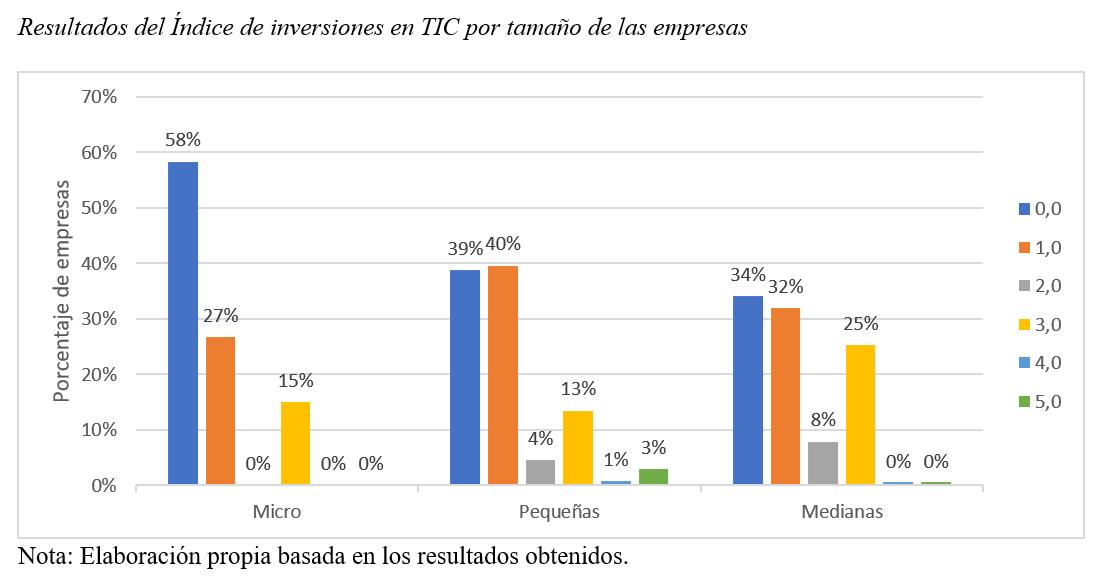 Puede observarse en la Figura 2, los resultados del Índice de inversión en TIC en función al tamaño de las empresas.