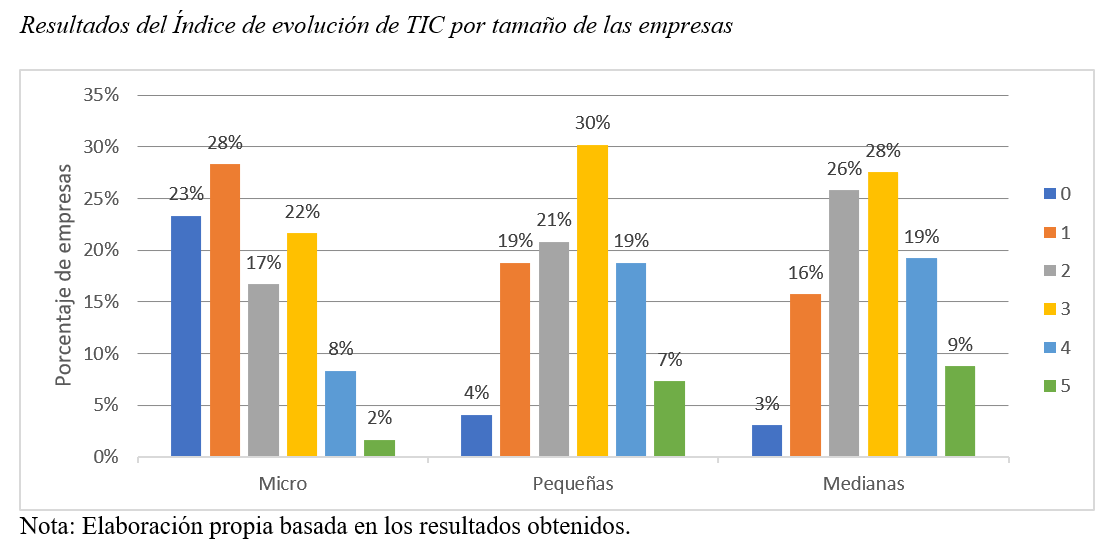 La Figura 4 permite apreciar la distribución del Índice de evolución TIC en función al tamaño de las empresas de la muestra.