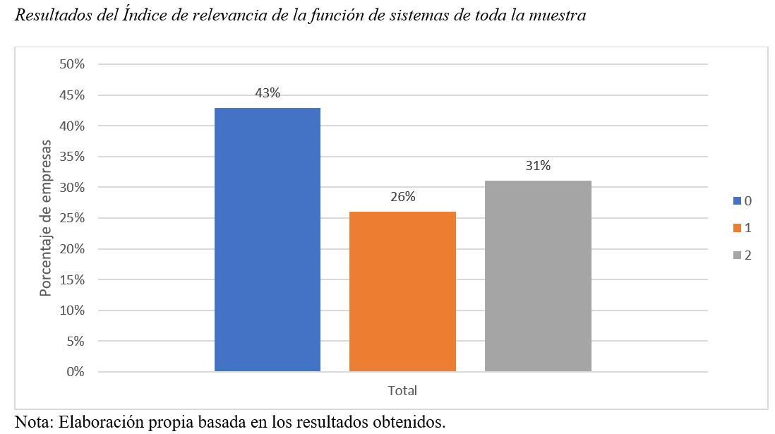 La Figura 5 muestra la distribución del Índice de relevancia de la función de sistemas sobre el total de la muestra de las empresas analizadas.
