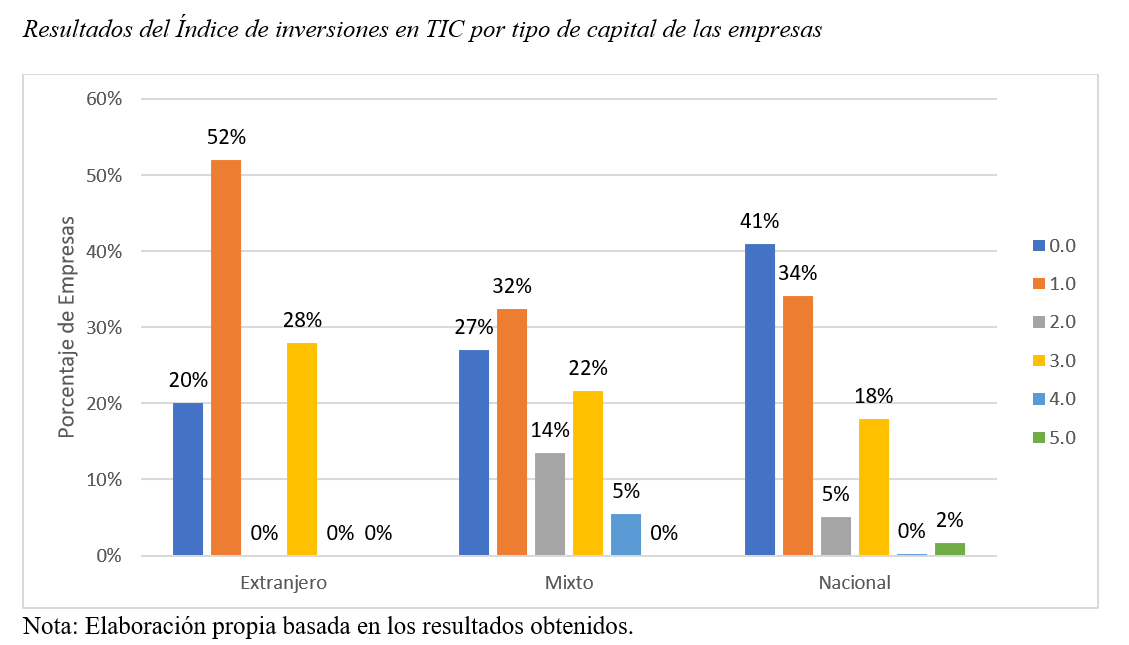 Hasta aquí pueden apreciarse los hallazgos de Tricoci et al. (2015) relativos al sesgo del tamaño y de la propiedad extranjera del capital en lo que respecta a mayores niveles de inversión y evolución de las TIC.