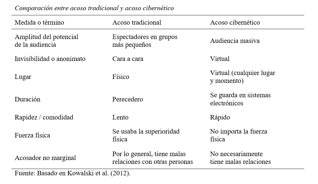 Para mantener este ambiente, el gerente debe conocer las diferencias entre el acoso o bullying tradicional y digital o cibernético. Algunas investigaciones como la de Kowalski et al. (2017) han demostrado que el acoso, sea cibernético o tradicional, está relacionado o causa niveles de depresión, ansiedad, pensamientos suicidas, baja estima y ausentismo. Estas conductas pueden afectar el desempeño laboral, la creatividad, la productividad y la satisfacción, lo puede llevar a conductas no deseables dentro de la empresa. Cuando los empleados perciben altas demandas laborales con muy pocos recursos para poder manejar las mismas, se producen resultados negativos tanto en el ámbito laboral como en el personal.