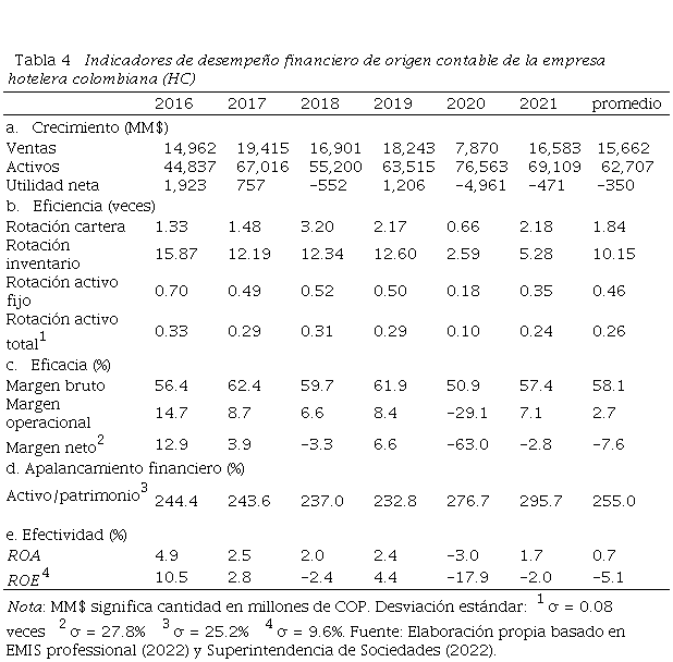 Desempeño financiero de la empresa hotelera en Colombia (HC)