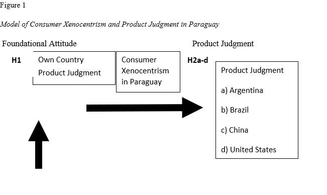 Considering the amalgamation of consumer xenocentrism and product judgment literature in confluence with the Paraguayan context, we offer the following hypotheses. The first hypothesis addresses the connection between one's own country's product judgment and the development of consumer xenocentrism. Paraguayans that are more nationalistic in outlook consider Paraguayan products in a more positive light (Pisani et al., 2022), thus, impacting perceived product judgment. Hence,