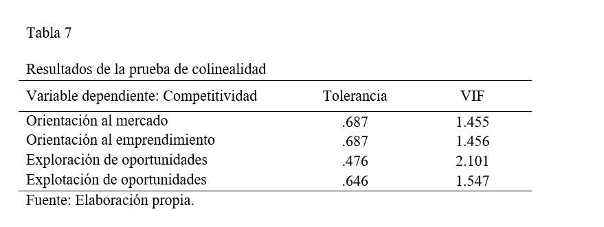 En alineación con la literatura, la orientación al mercado contribuye al desempeño de la empresa (Chaudhary & Batra, 2018; Mohiuddin Babu, 2017). Por su parte, Pratono et al. (2019) demostraron en sus hallazgos que las empresas orientadas al mercado estaban en una mejor posición para desplegar sus capacidades de explotación y exploración.