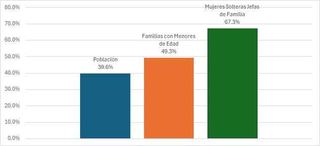 Según los datos de la Oficina del Censo de EE. UU. presentados en la Figura 1, el 39.6% de la población en Puerto Rico vivió bajo nivel de pobreza en el 2023. Esa cifra alcanzó 49.3% en familias con niños y 67.3% entre mujeres solteras jefas de familia (U.S. Census Bureau, 2023a, 2023b). El salario mínimo de $9.50 vigente antes del aumento a $10.50 que fija la Ley 47 de 2021 equivale a un ingreso anual bruto de $19,760 para una persona que trabaja a tiempo completo todo el año. Este ingreso estaba por debajo del ingreso necesario para superar el umbral de la pobreza que debía tener una persona menor de 65 años a cargo de un dependiente en el 2023. Esa cifra era $21,002 (U.S. Census Bureau, 2023c). Para alcanzar ese ingreso, una persona que trabajara por 40 horas cada semana, las 52 semanas del año, debía haber recibido un salario de $10.10 por hora como compensación por su trabajo.
