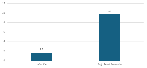 Se ha planteado también que como resultado del incremento del salario mínimo a $10.50 ocurriría un incremento significativo de la inflación. Se decía subiría casi 5.0 puntos porcentuales. El informe producido para la comisión asume como parte del análisis una inflación subyacente de 3.0%. Por lo tanto, proyecta que con el aumento del salario mínimo establecido para el 2024 a través de la Ley 47 del 2021 habrá un incremento de la inflación de 1.8 puntos porcentuales (Abexus Analytics, 2024).