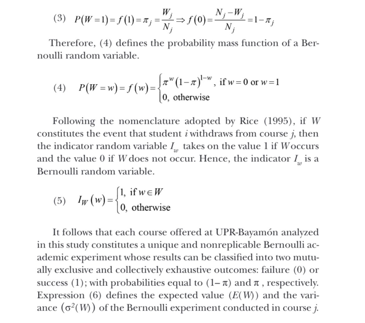 Using the Bernoulli model to analyze the distribution of course withdrawals at UPR-Bayamón