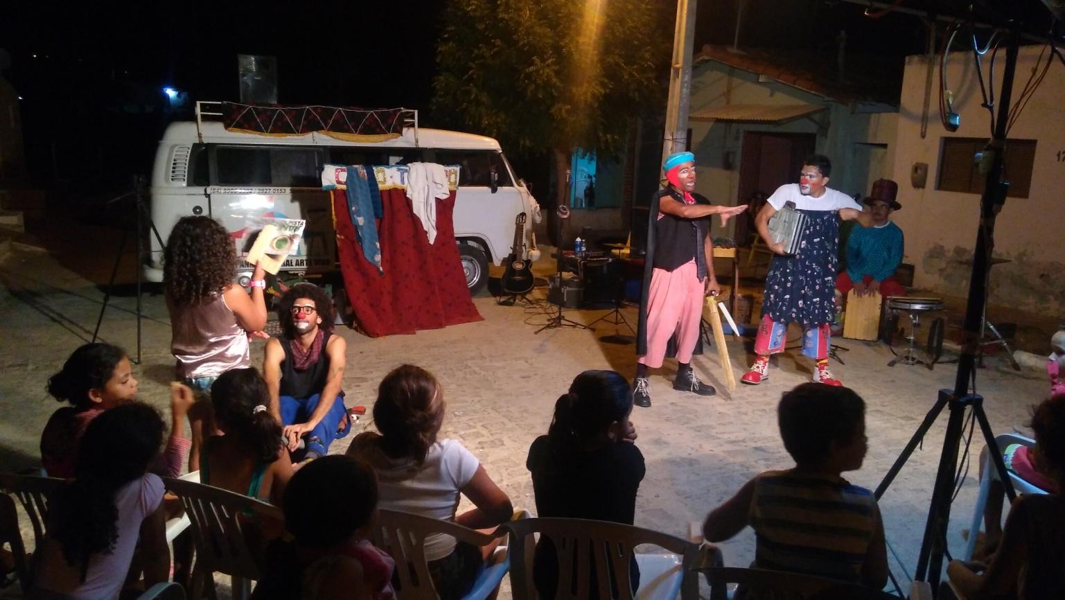Diante das diversas frentes de atuação da Companhia Teatral Arte Viva, salientamos, ainda, o Cine Rural, iniciativa na qual, a partir da instalação de uma tela no suporte acima do veículo próprio12, os integrantes visam levar a exibição de produções audiovisuais às comunidades de Santa Cruz/RN e cidades com menor acesso a esse conteúdo, destacando, principalmente, filmes de origem brasileira. (SILVA, 2019).
