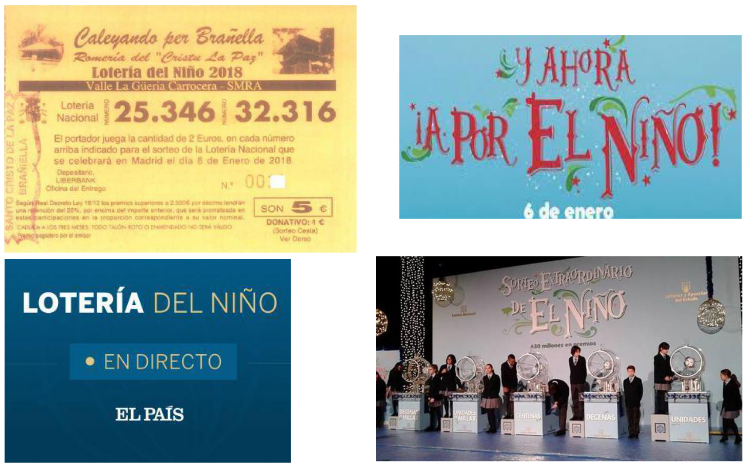 Confira algumas imagens, divulgadas na mídia (TV, internet, impressos) da loteria del Niño 2018, lançada anualmente pela Loterias y Apuestas del Estado, em referência comemorativa à festa de reis na Espanha.