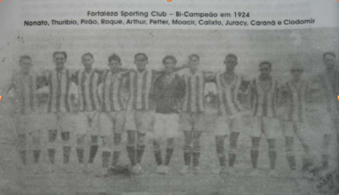 Acontece que, o futebol surge no Brasil pautado por interesses de uma elite branca em um discurso que defendia a divisão de classe em seus aspectos econômicos e raciais. Para os nobres, a miscigenação e inserção das classes subalternas no futebol provocariam uma degeneração social. Entretanto, essas narrativas sofriam resistências e não eram aceitas em sua integralidade. Como podemos observar na figura 1, a “pluralidade” entre os jogadores no time do Fortaleza na década de 20. Detalhe para a grafia da marca do time na época: Sporting Club.