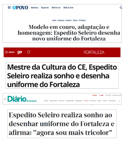 A parceria entre Fortaleza E.C e Espedito Seleiro traz à tona várias questões: são marcas fortes no Ceará que mexem com a paixão do povo local. Tanto é, que, essa colaboração gerou notícias em diversos portais, são conteúdos orgânicos que dão visibilidade. Podemos observar na figura 5, algumas matérias sobre essa colaboração do uniforme do Fortaleza E.C na Copa do Nordeste de 2021 assinado por Espedido Seleiro, a campanha “deu o que falar”, foi um BuzzMarketing (burburinho gerado por alguma ação de sua empresa/marca).