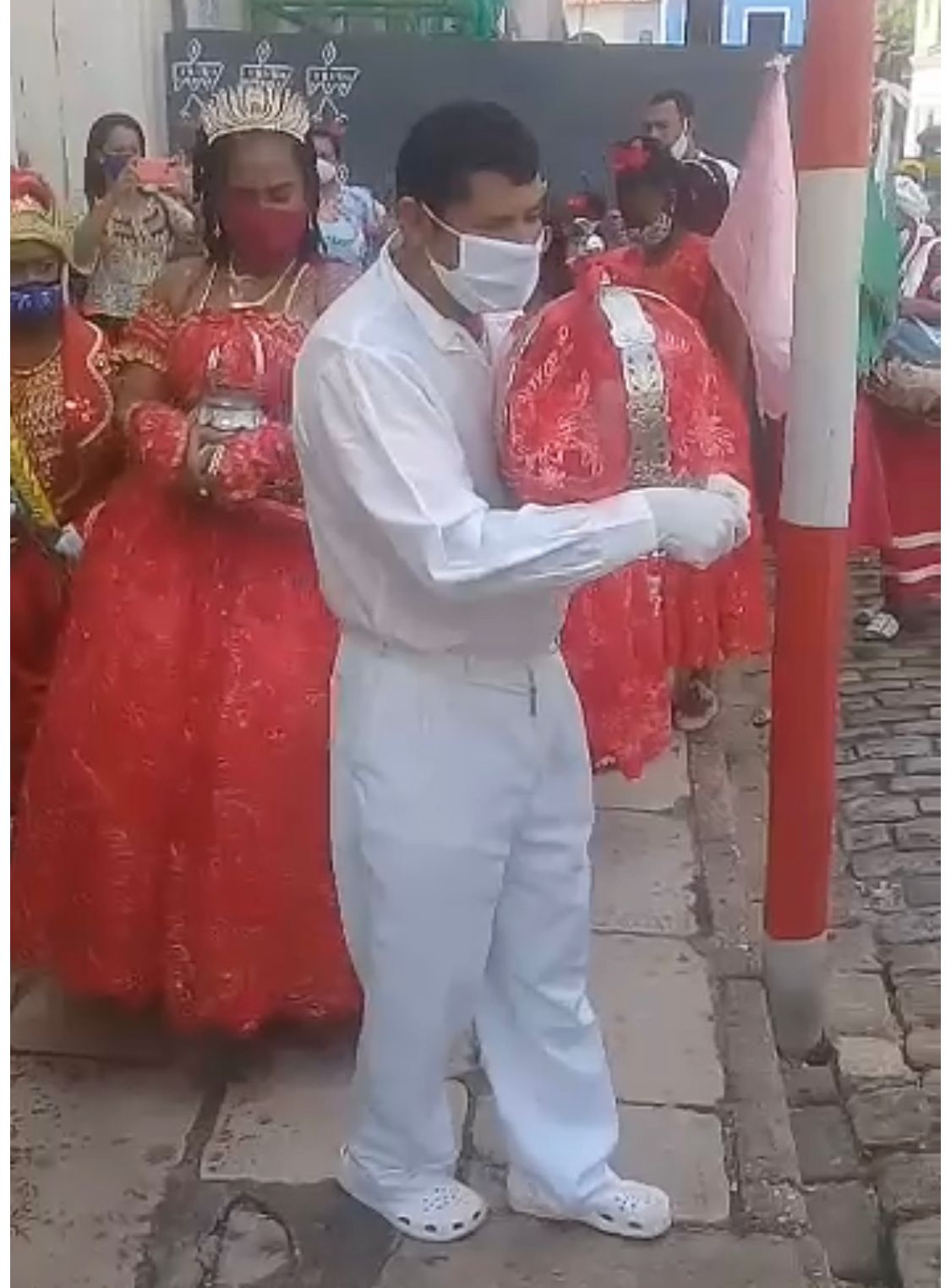 Apesar da Covid-19 em 2023 ter deixado de ser uma emergência de saúde global pela Organização Mundial de Saúde (OMS), os cuidados pandêmicos devem ainda ser implementados, pois ainda somos de qualquer forma sujeitos (as/ es) aos impactos destrutivos desse vírus8. Todos os cuidados e medidas sanitárias da OMS e demais setores responsáveis (estaduais, municipais e locais) a partir das ferramentas jurídicas (decretos e demais orientações) em relação tanto à prevenção quanto ao combate a essa doença tiveram uma acentuada ressonância nas comunidades culturais e populares maranhenses, especialmente entre os povos tradicionais de matriz africana na ilha de São Luís, ‘Pretagonistas Fazedores/as/ xs da Festa de Espírito Santo’ ou ‘Pretagonistas Divinos Maranhenses’.