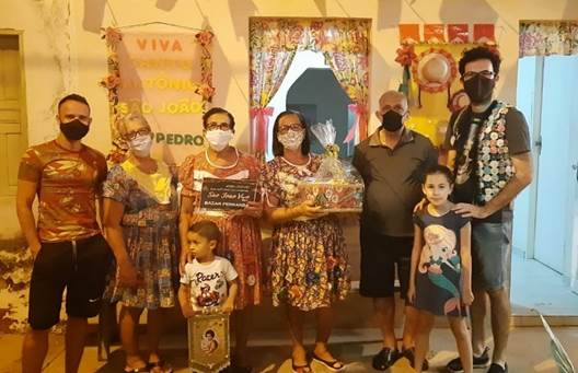 Participando pela primeira vez do concurso, a família Oliveira (Caiçara da Barra – zona rural do munícipio) nos surpreendeu pela ousadia no projeto. Além da fachada da casa, a ornamentação se estendeu pelo grande terreiro, o mesmo onde adultos e crianças celebraram em volta da fogueira de São João, na noite do dia vinte e três de junho. A família Oliveira apostou desde o cercado com palhas de coqueiro, delimitando, o arraiá no imenso terreiro, até à construção de uma pequena “bodega” de onde sairiam os “comes e bebes” de toda a festança. No ato de entrega da premiação de 3º lugar, encontramos uma família bastante animada, não apenas com os prêmios recebidos, mas feliz pela participação no concurso. Em um breve bate papo, as integrantes da família Oliveira ressaltaram a importância do projeto e, conforme relatado por “Fulô de Umbuzeiro”, responsável pela inscrição no concurso, “a ornamentação completa o sentido de toda a festa, trazendo mais alegria e diversão para todos os envolvidos”.