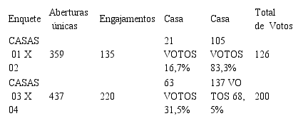 Das quatro propostas, uma seria eliminada, de acordo a porcentagem de votos na enquete realizada via instagram (@rádio105fmoficial). Em historys diferentes foram lançadas as propostas de casas (1 e 2) e (3 e 4). Após o período de 24 horas de votação foi analisado o histórico de dados disponibilizado pelo aplicativo e verificaram-se as posições de cada concorrente, no referido concurso.