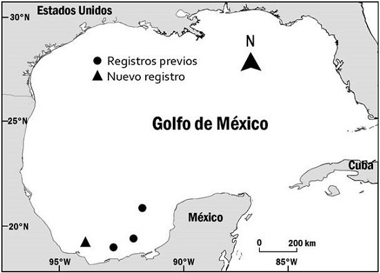 Las condiciones oceanográficas presentes en el Sistema Arrecifal Veracruzano, cerca del área de captura de este registro, son complejas: plataforma continental en forma de arco, estrecha (aproximadamente de 30 km), con una profundidad promedio de 70 m; topografía heterogénea por la presencia de bancos de arena, zonas arrecifales e islas que forman entre sí una serie de canales (Salas-Pérez & Granados-Barba, 2008). Existe, además aporte terrígeno por la descarga de los principales ríos de La Antigua, Jamapa y Papaloapan (Krutak, 1997). Con respecto a los procesos oceánico-atmosféricos, como las corrientes marinas, varían a lo largo del año, incluso con una marea de tipo diurna. Los frentes atmosféricos, conocidos localmente como “nortes” producen importantes mezclas en la columna de agua, y conducen a conexiones entre los elementos pelágicos y bentónicos (Gallucci & Netto, 2004; Salas-Pérez & Granados-Barba, 2008). Este conjunto de condiciones puede servir como zonas de refugio, con fines reproductivos o ambas.