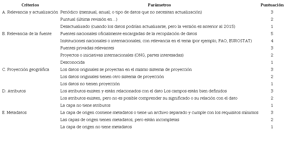 Análisis de calidad. Para el análisis de calidad de los 39 DG, se empleó el enfoque propuesto por UNESCO-COI (2021b), para el cual se estableció una lista de verificación mínima de las diferentes propiedades de los DG, de acuerdo con los criterios establecidos para ser utilizados en