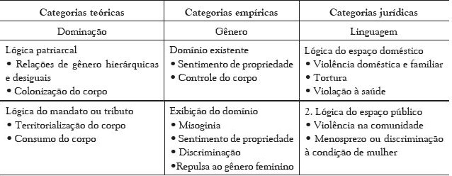 Em estudo anterior, foram propostas três categorias, tomando por base a mesma amostra desta pesquisa. As categorias foram assim classificadas: teóricas, empíricas e jurídicas, conforme tabela abaixo