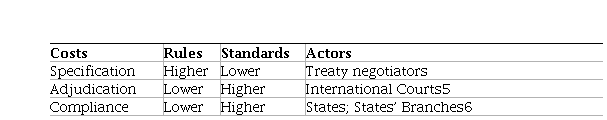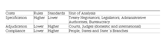 That being said, one should yet consider that the framework has to be adjusted to the international arena. The relative costs between rules and standards – as in the domestic realm – may be acceptable as an initial framework. But in a horizontal society of states, costs are attached to different actors: