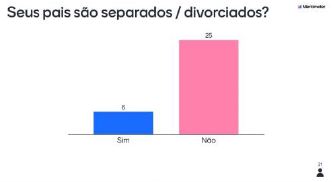 O público majoritário, composto por profissionais das áreas do Direito e da Psicologia, brasileiros e portugueses, relatou que seus pais continuam em união conjugal.