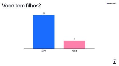 Questionados se tinham filhos, 21 participantes responderam que sim. Essa pergunta teve por objetivo questionar, em uma plateia qualificada e buscando capacitação sobre o tema da Alienação Parental, quantos incorrem na naturalização de atos que reforçam a cultura de parentalidade tóxica, não saudável, o que foi objeto da última pergunta, descrita a seguir.