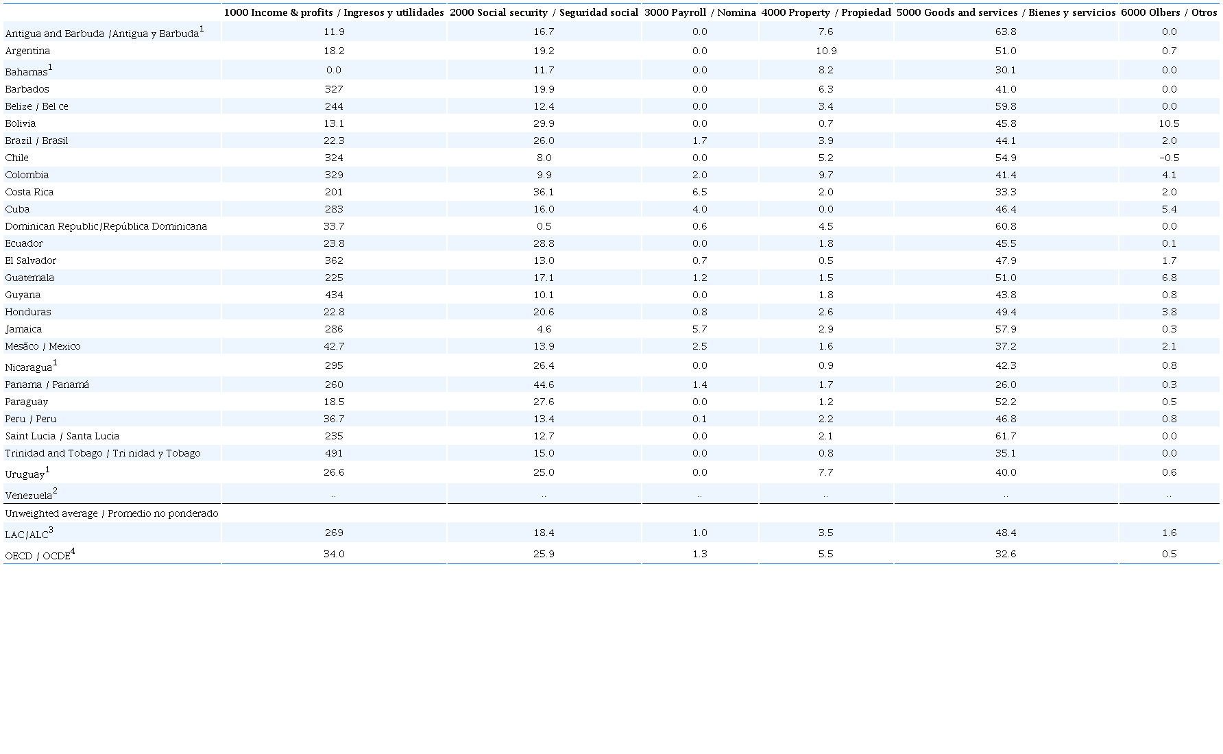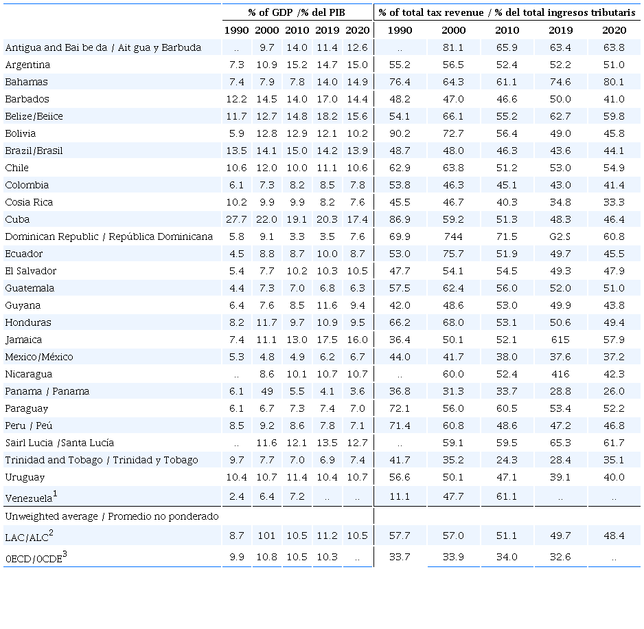 A distribuição da carga tributária por bases de incidência, por países individualmente considerados da América Latina, ainda pode ser acompanhada da seguinte forma: