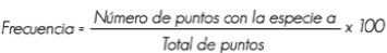 Estas variables permitieron estimar los valores de frecuencia, dominancia y densidad de las especies más representativas por localidad, y se calcularon de la siguiente manera: