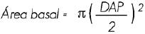 El área basal media es igual al promedio de las áreas basales de todos los individuos de cada especie, y se calculó con la fórmula: