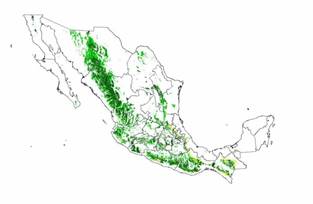 Las especies del género Pinus crecen, preferentemente, en los bosques de coníferas del hemisferio norte y se estima que en México existe el mayor número de taxa, 75 de los 110 que se distribuyen en el mundo. Eguiluz (1998) indica que su principal área de distribución se localiza en la Sierra Madre Occidental, Sierra Madre Oriental, Sierra Madre del Sur y Eje Neovolcánico (Figura 1).