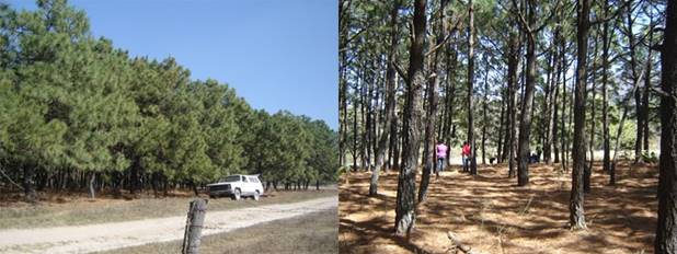 Se seleccionaron tres árboles de las especies Pinus douglasiana, Pinus devoniana y Pinus oocarpa plantados en 1985, con una densidad de plantación de 2 x 2 m en el campo experimental Bosque Escuela de la Universidad de Guadalajara (Huerta et al. 1985), localizado en el bosque La Primavera en la comunidad de Cuxpala, Jalisco, México (Figura 9).