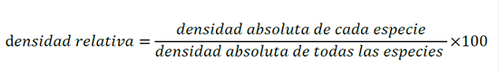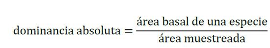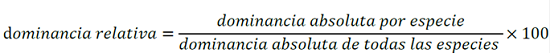La dominancia (estimador del área basal) relativa se calculó de la siguiente manera: