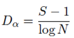 La riqueza de especies (Dα) se deriva del Índice de Margalef (1977) utilizado para estimar la biodiversidad de una comunidad.