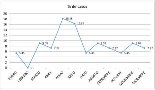 La mayor ocurrencia de casos se presenta en los meses mayo y junio.
