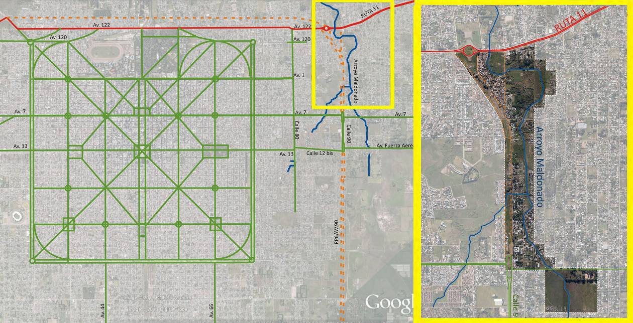 Las catástrofes naturales de lluvias e inundación en la región ocurridas el 2 de abril de 2013, pusieron en evidencia la vulnerabilidad de las estructuras urbanas, y la fragilidad de convivencia entre naturaleza y ciudad (Etulain, 2017). Las Obras de infraestructura en desarrollo en la actualidad, contemplan un punto de vista hidráulico pero no abordan cuestiones paisajísticas, ambientales y de relación con la estructura urbana-arquitectónica que puedan garantizar un resultado de carácter público, de gran necesidad y oportunidad para el área.