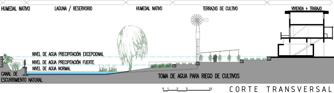Esta situación lleva a pensar en formas posibles de habitar territorios doblemente vulnerables: La fragilidad ambiental superpuesta a un desarrollo socioeconómico deficiente, que potencia el daño que puede producir cualquier evento natural en la población. Es aquí donde se propone articular el espacio residencial con el productivo, asumiendo el conflicto latente con las condiciones de sostenibilidad ambiental, indagando en propuestas que articulen infraestructura urbana, criterios ecológicos y posibilidades de desarrollo humano.