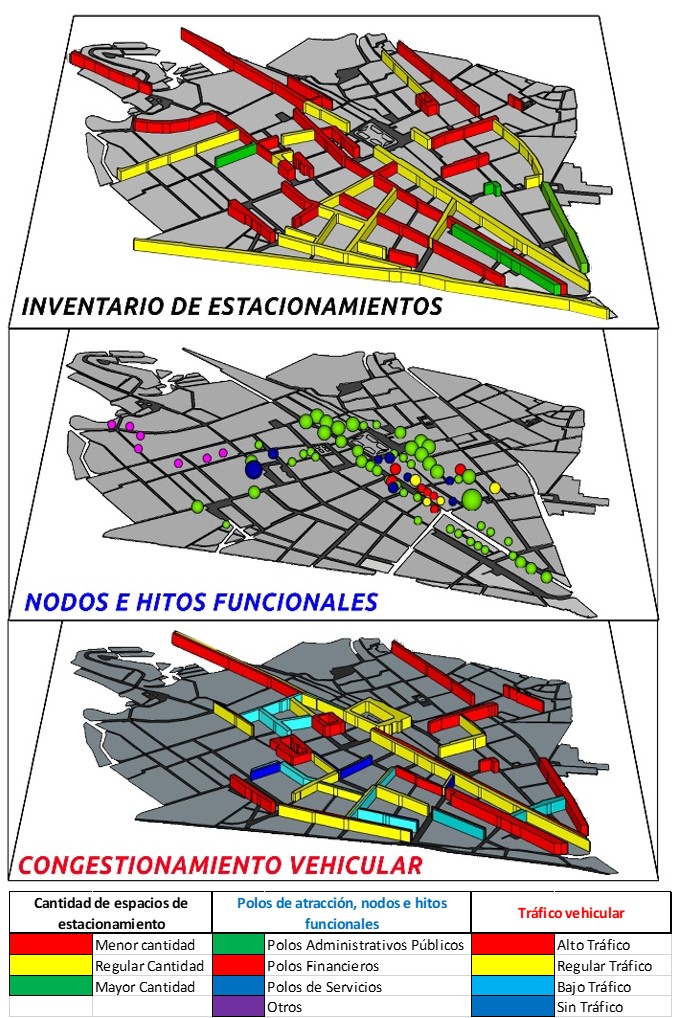 Los planes de infraestructura de redes viales, en el tiempo fueron enfocados en base a metodologías de la oferta y la demanda, por lo que, a mayor cantidad de viajes al centro histórico, tuvo que crecer la oferta de estacionamientos, destinado áreas públicas, restringiendo vías para poder equilibrar la creciente demanda.