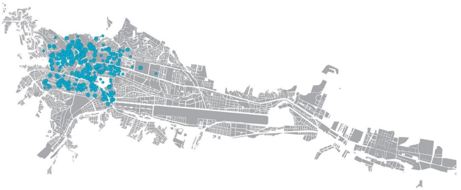 Esto remarca que la ubicación de los polos de atracción se relaciona directamente con las calles de mayor tráfico vehicular analizada de manera gráfica como en la figura 09 mediante la superposición de datos y su interpretación categórica.