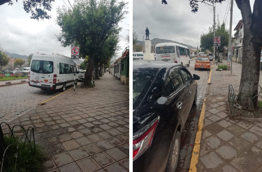 Si bien es cierto. Las autoridades municipales mediante Ordenanza Municipal 022-2016-MPC, prohíbe los estacionamientos en la vía pública en todo en Centro Histórico de Cusco, sumado al plan de peatonalización aprobado por Ordenanza Municipal 032-2013-MPC siendo esto una recomendación de UNESCO para Ciudades Patrimoniales; sin embargo, como se aprecia en la figura 04, los conductores no solo de vehículos particulares, sino principalmente del sector turismo, hacen caso omiso de las disposiciones municipales y estacionan sus vehículos en sitios prohibidos como son las vías públicas. Ya para el 2016, el Plan de Movilidad de la Ciudad del Cusco determino la existencia de un déficit de 2243 áreas de aparcamientos diarios al interior del Centro Histórico de Cusco.