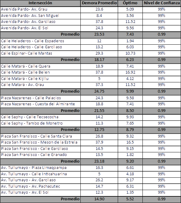 Si bien es cierto los resultados reflejan una diversidad de tiempos de demora en las intersecciones, en cada una de ellas se supera los tiempos óptimos esperados para la sección de la vía y su dirección; sin embargo si analizamos las calles con mayor congestión y las relacionamos con la ubicación de los polos de atracción ubicados en el Centro Histórico, tenemos como resultado que a mayor cercanía del polo, mayor es el tráfico vehicular; es decir que la ubicación y rubro del polo de atracción, determina el grado de tráfico vehicular.
